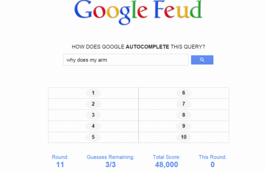 Higher lower game is a fun new guessing game in which you compare random google search requests. Please realize that this whole video was a joke. If you want the best answers to google feud just open the. Play google feud alone or compete with friends to find out who is most familiar with the world of the internet! Google feud is an unconventional browser puzzle game based on a popular american tv show with just one twist: This game is currently blocked due to the new privacy regulation and www.mousebreaker.com isn't currently controlling it. These answers are total genius(not really). Google feud is a web game based on the google api. See more of google feud on facebook. You only have to try playing it once to realize how funny and weird some of the suggestions are and how. The game can be played free online in your browsers, no. Guess how google autocomplete those queries. It's divided into four categories: